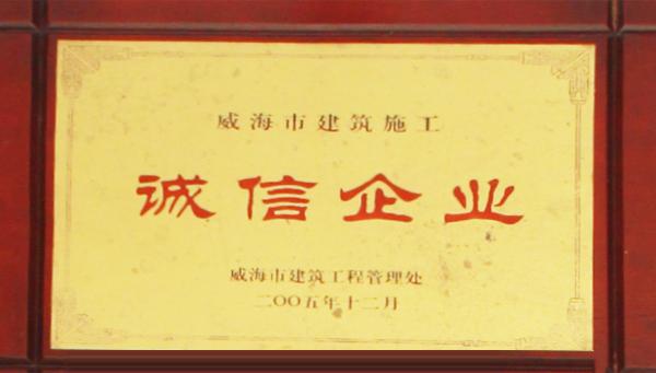 公司連續(xù)八年榮獲威海市“誠信開發(fā)企業(yè)”、“建筑施工誠信企業(yè)”,連續(xù)九年被評為威海市級“守合同重信用企業(yè)”,多次被評為威海市“市級文明單位”、“質(zhì)量管理先進(jìn)企業(yè)”、 “安全管理先進(jìn)企業(yè)”,乳山市“優(yōu)秀企業(yè)”、“先進(jìn)民營企業(yè)”、“納稅明星企業(yè)”,在社會(huì)上逐步樹立了誠信、穩(wěn)健的企業(yè)形象。
